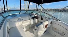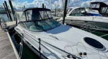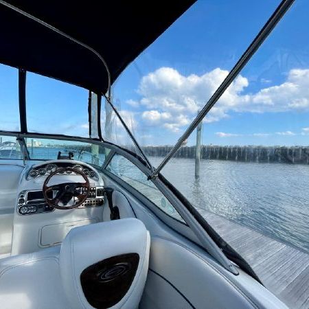 This clean and low hour, turn key 2004 Crownline 250 is in great shape. Perfect for cruising the weekend's or evening's. The boat has a large swim platform with ladder built in. The cockpit layout is spacious and well thought out. An Aft lounge seat that converts into a sunpad compliments the wet bar while hosting friends on a sunny day. Cooler storage built into port side. Port side lounge padded seating with arm rest for company while cruising in comfort. The Helm station is modern and makes handling this boat a breeze. The interior on this boat is as as clean as it gets, in like new condition. Everything from the Helm station to the Swim Platform, headliner to the carpet of the interior is in extremely good condition on this Crownline. Stainless steel is in great shape around boat. Equipped with a full Bimini T-top fully enclosed, you can stay out of the weather when preferred. Comes with Mooring cover as well. Boat has been professionally cleaned and waxed and winterized. Boat is ready for a viewing in water.