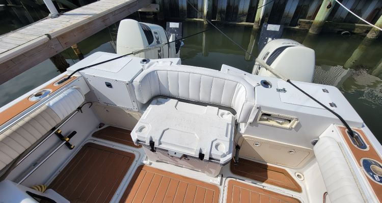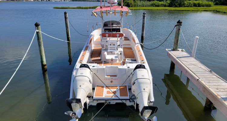 A solid fishing platform with incredible stability with excellent fishing amenities. Powered with a pair of newer Suzuki 150 Sour Strokes and newer Garmin Electronics makes her a fishing machine targeting your favorite species.