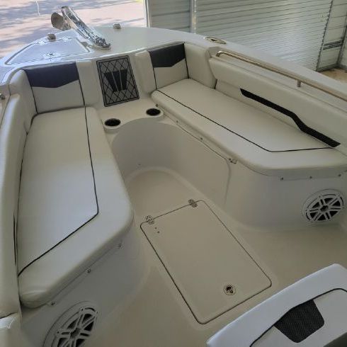Are you ready for fun on the water? Take a look at this clean Wellcraft Scarab 222cc and get your gear ready! Notable equipment includes the SCARAB Offshore Package with diamond-pattern marine mat and graphics, Deluxe black powdercoated T-Top, Garmin GPSMAP UHD94SV GPS/FF, Garmin VHF110, Lenco trim tabs, and FUSION Bluetooth Audio system with six (6) speakers and two (2) subwoofers (JL Audio). Mfr. listed standard features include: