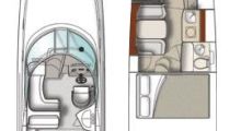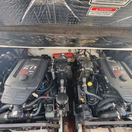 Built on a solid fiberglass deep-V hull, with upgraded twin Mercruiser 5.0L MPI 260hp engines coupled with Mercruiser Bravo III duoprop sterndrives.