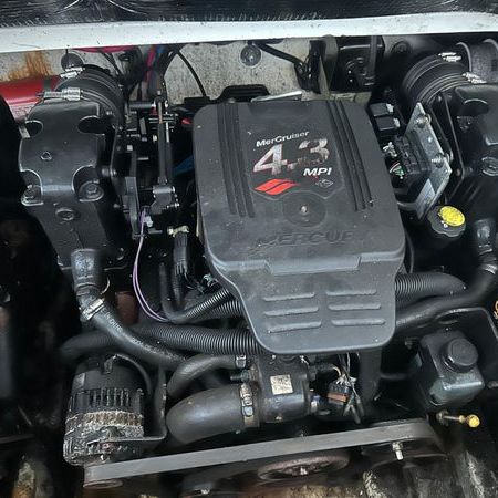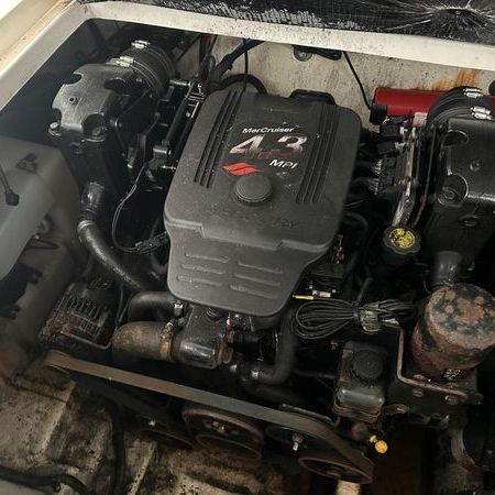 Built on a solid fiberglass deep-V hull, with upgraded twin Mercruiser 4.3L MPI 220hp engines coupled with Mercruiser Bravo III duoprop sterndrives.