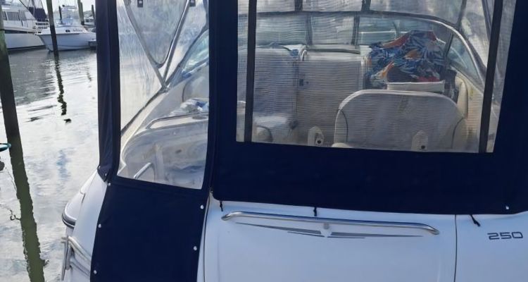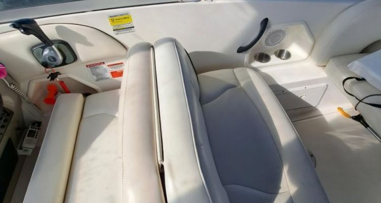 The interior layout is aft cabin bunk, convertible vee berth. Fully enclosed camper top with u-shaped zippers. large swim platform with lift up storage area, twin 30 amp electric to accommodate the Air Conditioning System,AC/DC refrigerator, electric single burner stove, Tappan Microwave.
