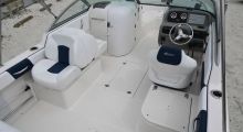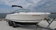 Come see this like new, very well maintained, R227. Boats like the R227 are the reason why dual console outboards are one of the hottest sellers on the water today. In what other 22-footer can you fish at sunrise, wakeboard all day and cruise under the moonlight? For the fishermen, the R227 includes secure rod storage, a raw water wash down, a self bailing cockpit and a 20-gallon livewell. Up front, the bow area easily converts from a casting platform to wraparound seating. In the cockpit, the R227 features a large enclosed head and a deep infloor ski locker with lockable rod storage. Stainless steel hardware including flush pull latches and electro-plated thru hull fittings are what you'd expect from Robalo. Key options include a must have Bimini Top with windscreen, ski tow bar, snap-in carpet and a freshwater shower.