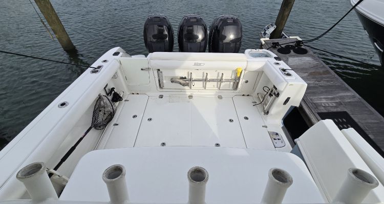 - Insulated in-floor fishboxes with pump-out – aft (2), forward (1)