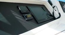 Helm Deck has three Stidd white & chrome adjustable helm seats across the front. Two Cruiseair reverse-cycle air-conditioning units provide comfort. Viking helm pod is centerline with Palm Beach style stainless single lever controls and upright electronics panel. Excellent visibility.
