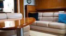 This boat has a full paint job completed in 2008 with light blue hull and white decks and superstructure. The single stateroom layout gives the interior more space while the pullman berth arrangement still provides the sleeping accommodations if needed. Some of the more recent updates on this boat include a new Full Enclosure, covered bolsters, 17.5kW generator, Simrad autopilot, New Touch Screen Garmin GPS/Chartplotters, cockpit freezer compressor, battery charger, and air-conditioning system updates. The motors have been regularly maintained with an open checkbook.